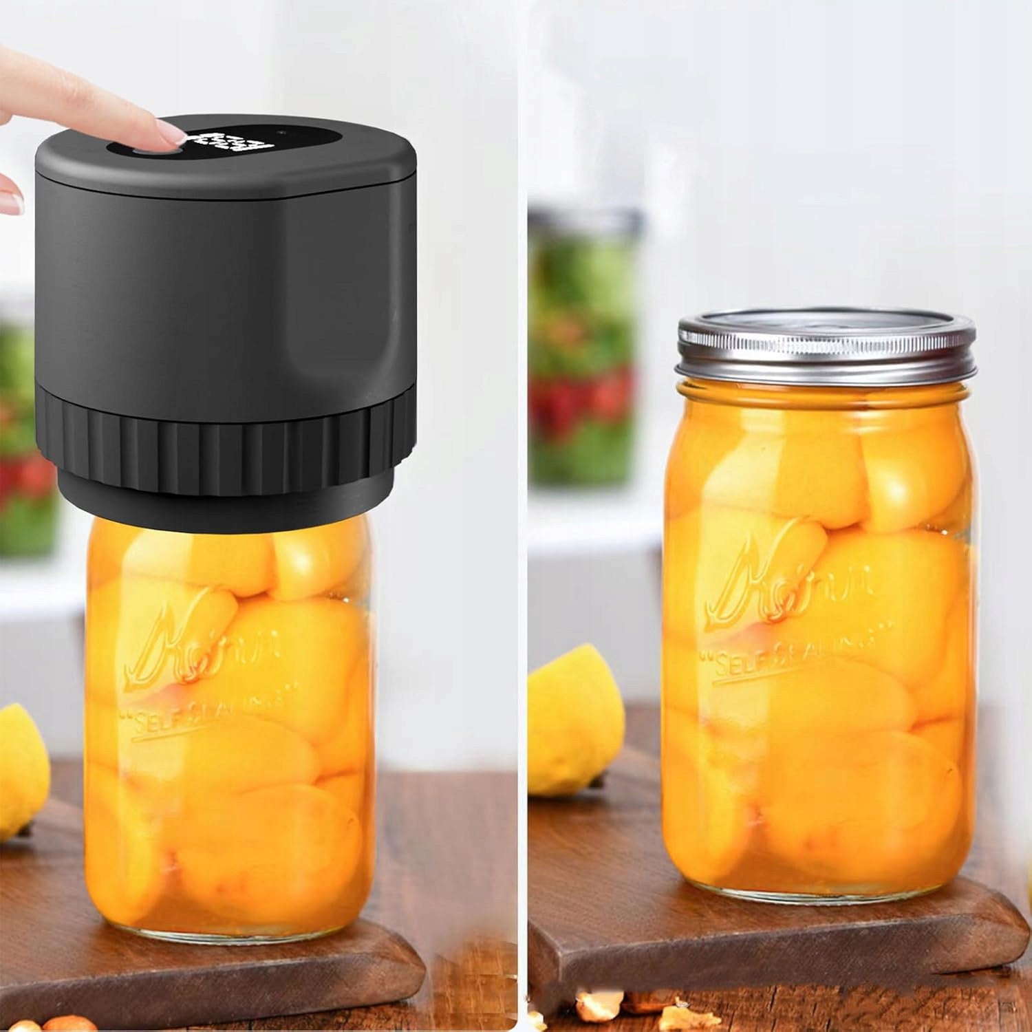 Notre scelleuse électrique sous vide est spécialement conçue pour les bocaux en verre, offrant une conservation optimale de vos aliments. Grâce à un système hermétique, vos fruits, légumes, noix, épices et autres denrées restent frais jusqu’à 5 fois plus longtemps.